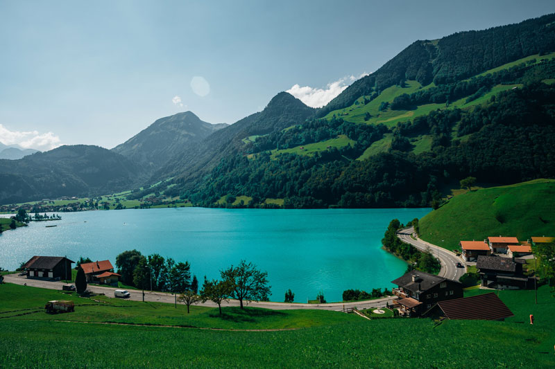 山峰和绿草图片